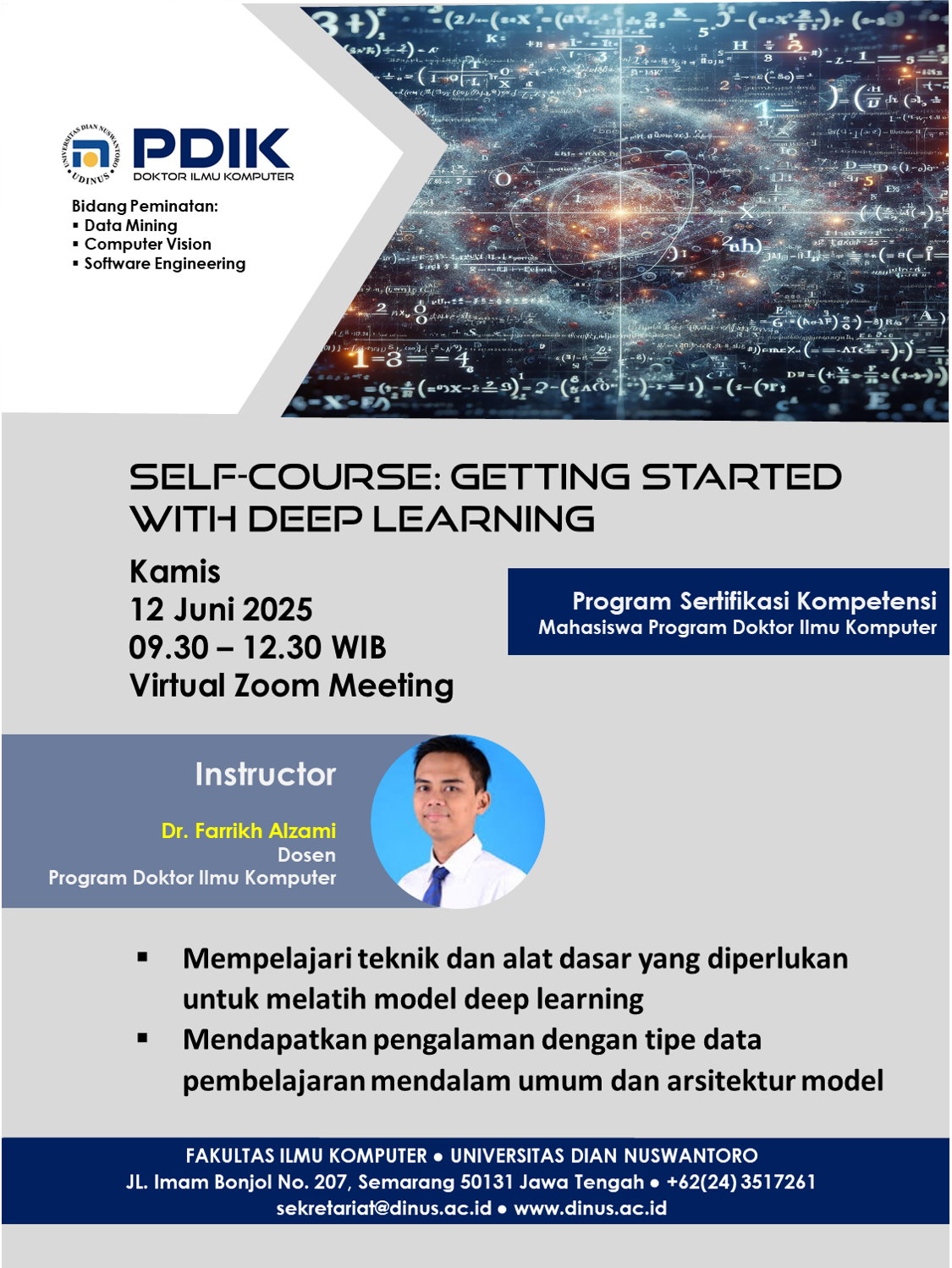 Dalam rangka untuk meningkatkan kompetensi mahasiswa/lulusan, semua mahasiswa Angkatan 2021, 2022, dan 2023 (yang belum lulus), diwajibkan untuk mengikuti Program Sertifikasi Kompetensi yang bertajuk Self-Course: Getting Started with Deep Learning yang diselenggarakan oleh NVIDIA